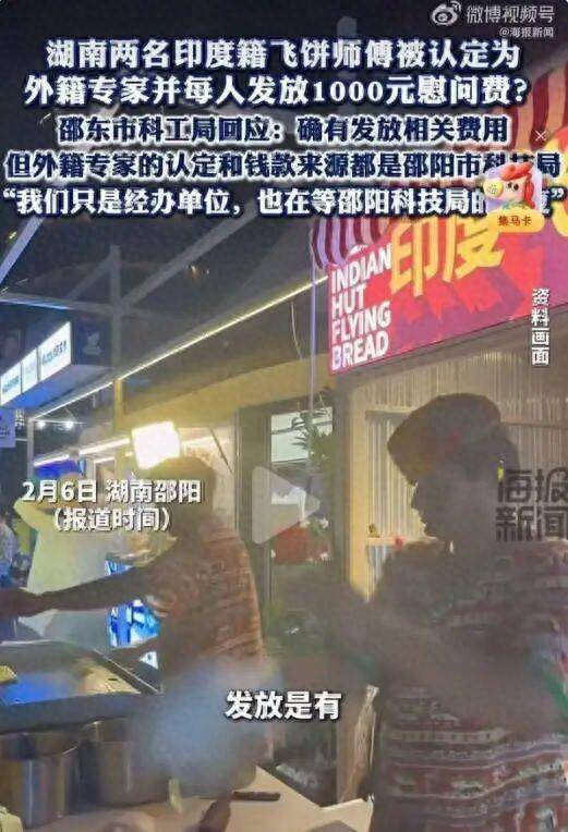 近日,据媒体报道,两名印度籍飞饼师傅被湖南邵阳认定为外籍专家并获得千元慰问费,引发关注。