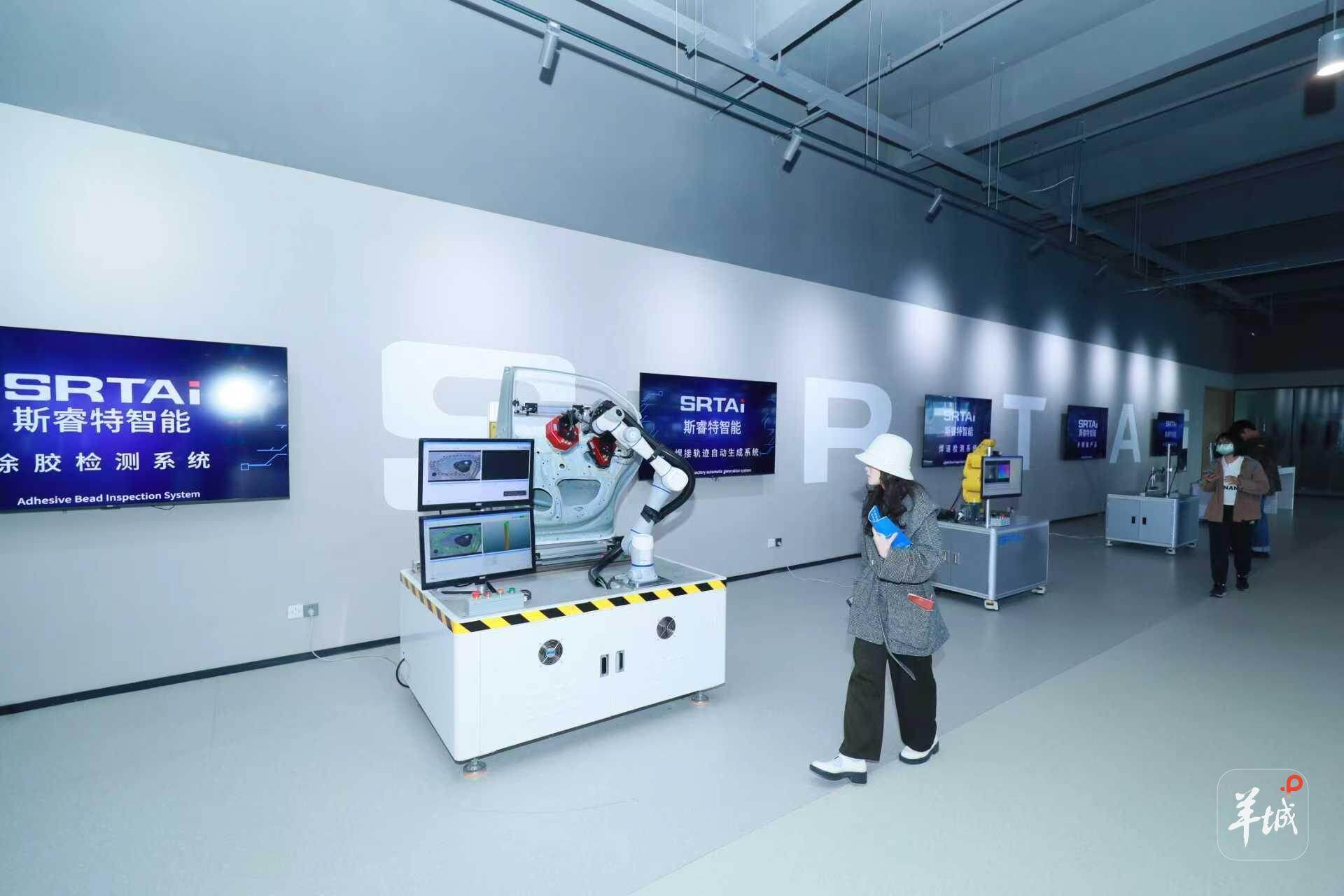 在园区A2栋,广州市斯睿特智能科技有限公司的展厅里,一排排工业机器人正向大家演示着内嵌智能体的涂胶检测、轨迹生成等高柔性操作。